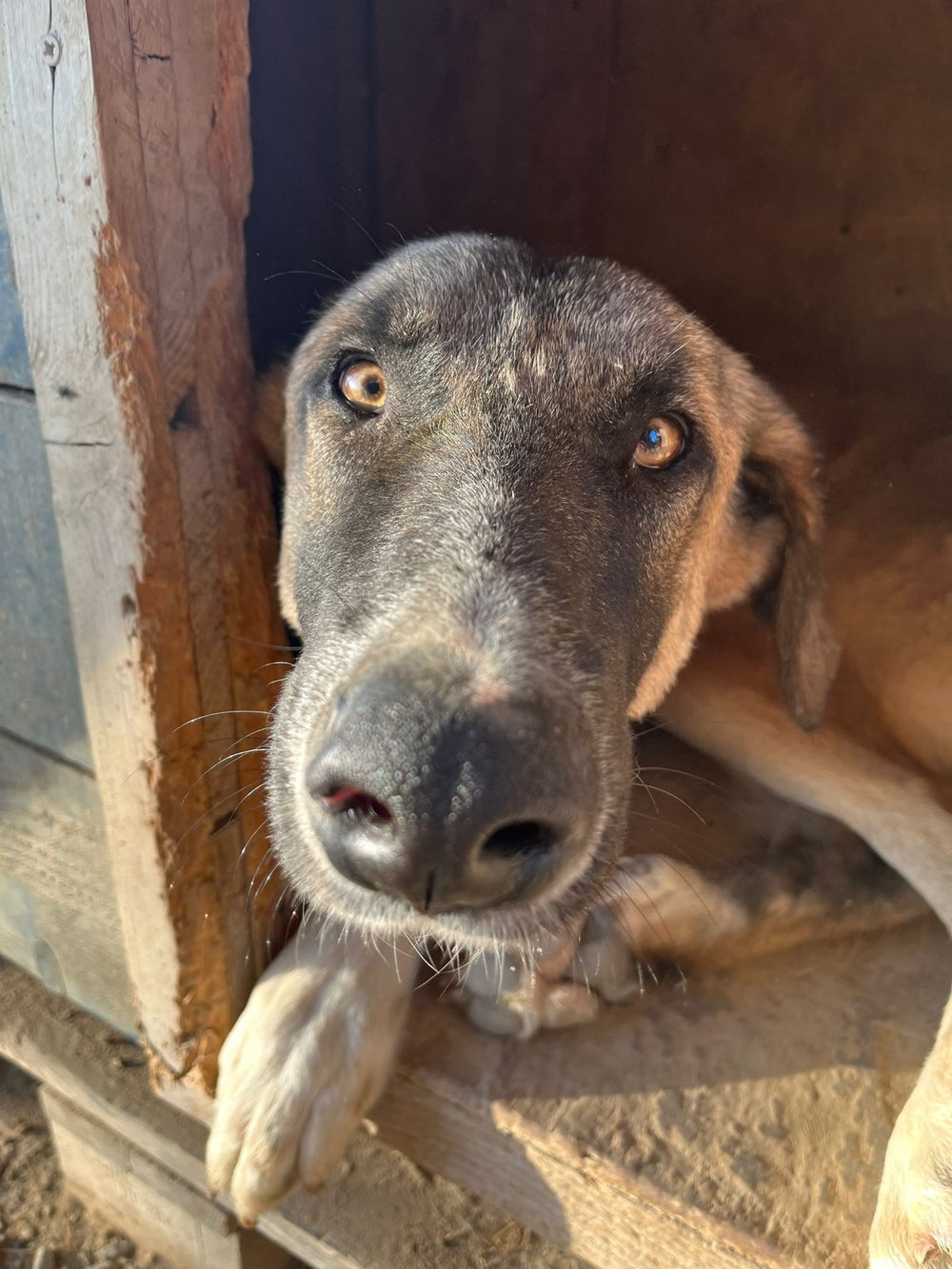 Mit etwa 60 cm Schulterhöhe und ca. 25–28 kg ist Phoenix ein mittelgroßer Hund mit einem sanften Herzen und treuen Augen, die viel erzählen.
