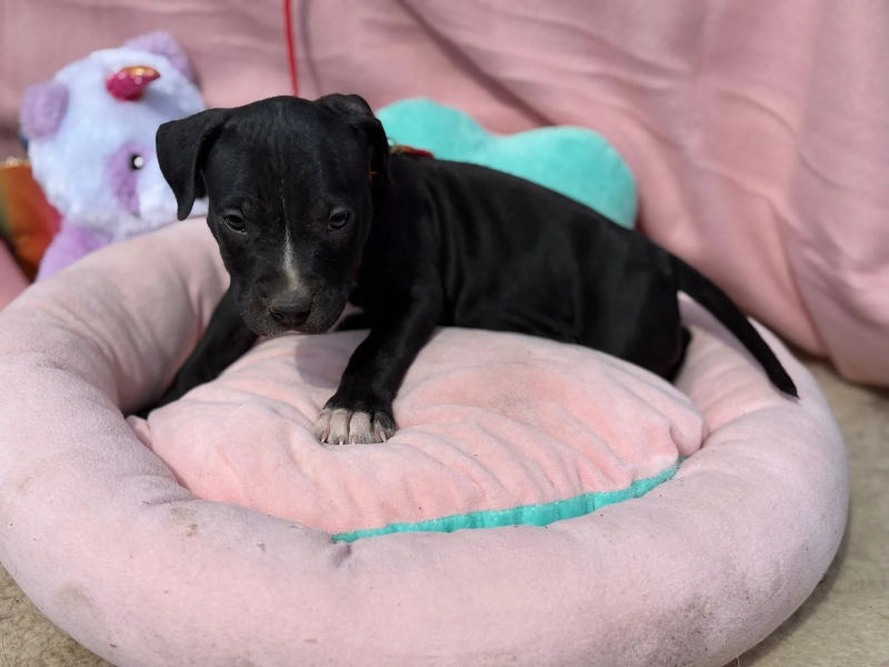 Am 25.5.2025 kam Mama Emma, zusammen mit einem anderen, namenlosen Staffrüden, welcher es leider nicht geschafft hat, aus einem Brennpunktviertel, als Beschlagnahmung ins Tierheim. Man kann sich nur schwer vorstellen, wie die Hunde dort leben mussten und wie mit ihnen umgegangen wurde. Solange das Verfahren läuft, darf «nichts an den Hunden gemacht werden», sprich keine Kastration etc. Zu diesem Zeitpunkt war Emma schon schwanger, wir vermuten von dem inzwischen verstorbenen Staffrüden und gebar am 8.7.2025 9 Welpen, Rahul, Vipin, Nila, Vicky, Nikita, Rari, Divya, Rena und Prince. Nun wurde die Hundefamilie dem Tierheim zugesprochen und wir können sie in die Vermittlung nehmen. Ihnen ist ein trauriges Leben erspart geblieben und sie halten schon Ausschau nach ihren neuen Menschen. Wir drücken ihnen fest die Daumen, dass sie bald ein verantwortungsvolles Zuhause finden.