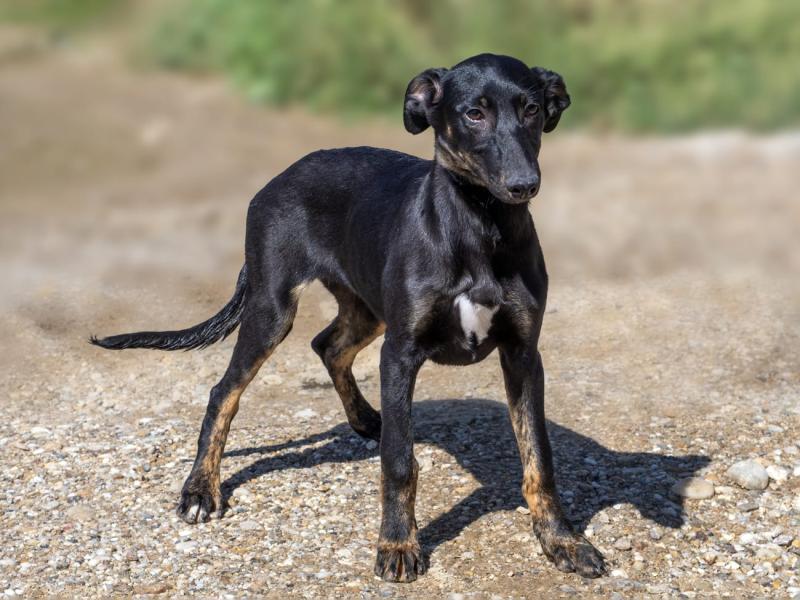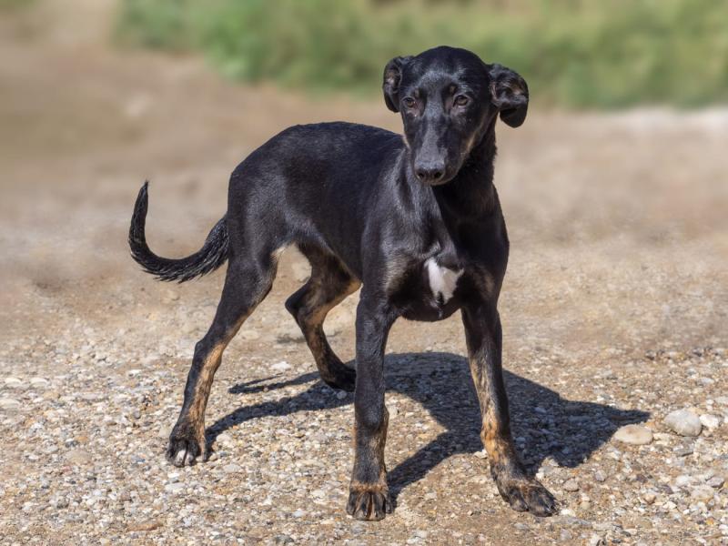 Die Mutter hat den Namen Romy bekommen und ist vermutlich eine Mischung aus Schäferhund/Galgo/Podenco.