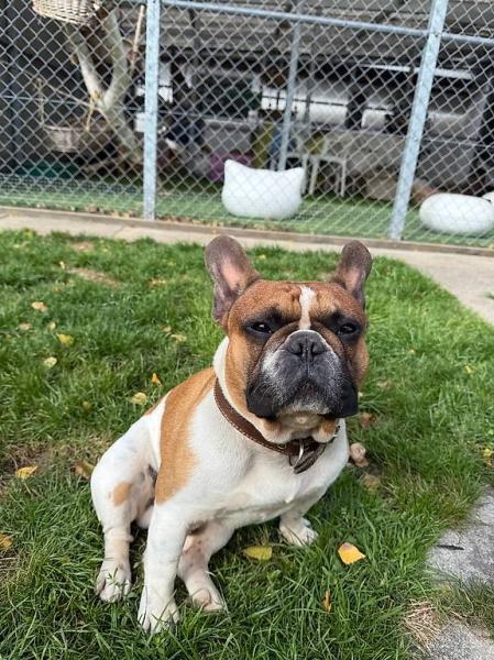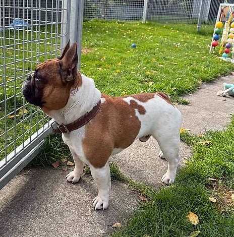 RINALDO ist eine fünfjährige, temperamentvolle Französische Bulldogge, die sehr menschenbezogen und verspielt ist. Mit Hündinnen kommt er gut klar, mit kastrierten Rüden in der Regel auch. Mit unkastrierten Rüden muss man vorsichtig sein. Er hat keine Atemprobleme und ist kerngesund. Leider wurde der Französische Bulldogge Rüde aufgrund der Trennung seines Besitzerpaars zu seinen Züchtern zurückgegeben, die ihn nun versuchen weiter zu vermitteln. Hier lebt er meistens in der Box und in den Hundeausläufen der Hundepension. Er hat es hier nicht schlecht, aber ihm fehlt einfach eine konstante Bezugsperson/-familie, die mehr Zeit hat für diesen jungen, aufgeweckten und lernwilligen Hund, der einfach gerne dabei ist.