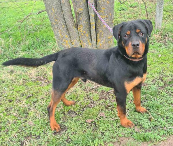 Am 8.2.2025 schreibt eine freiwillige, ungarische Helferin: "Rocky ist ein freundlicher und gut aussehender Hund. Er ist gerne in der Nähe von uns Menschen. Er läuft schön an der Leine und wacht über uns, der Umgang mit ihm ist einfach. Mit anderen Hunden verträgt er sich leider nicht, daher kann er nur ein Einzelhund sein. Rocky wartet bereits seit 3 Jahren darauf, den Richtigen, der die Charaktereigenschaften eines Rottis - arbeitswillig, gehorsam, selbstbewusst, tapfer, freundlich, anhänglich und gutmütig - zu schätzen weiss und seinem Bewegungsdrang gerecht wird, zu finden."