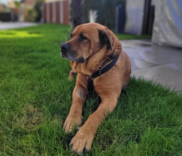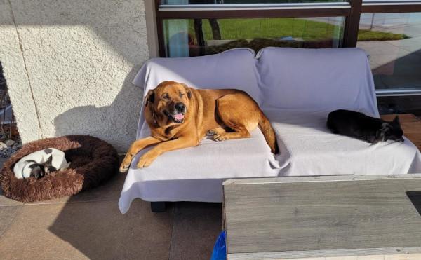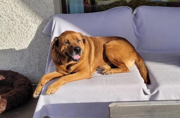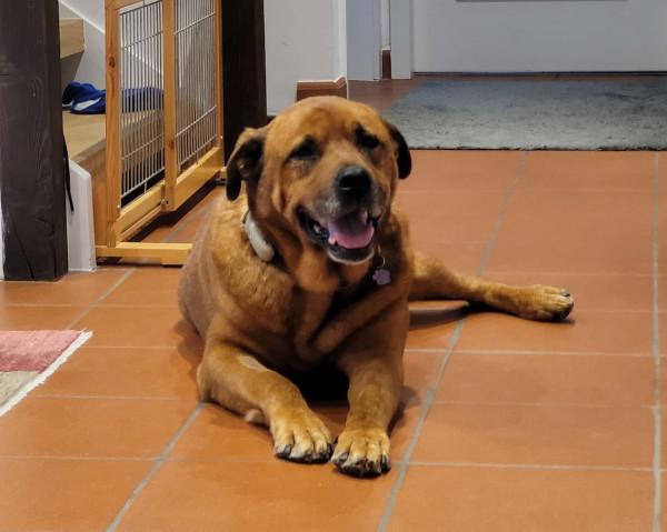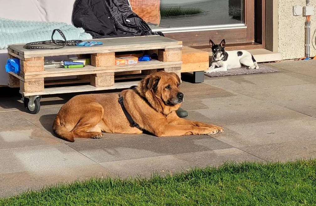 Mit seinen Artgenossen versteht sich Rodos gut, lebt aktuell (19.9.2025) allein in einem Kennel.