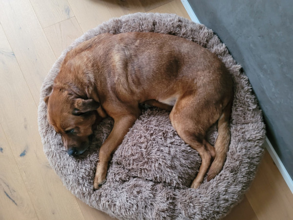 Bericht der Pflegestelle vom 18.11.2025: "Rodos ist erst einige Tage bei uns und verhält sich ab dem ersten Moment vorbildlich. Er ist stubenrein, läuft perfekt an der Leine und ist anständig mit den vorhandenen Zwerghunden. Rodos sollte in ein hundeerfahrenes Zuhause, ohne weitere Haustiere und als Einzelhund. Er versteht sich mit Hündinnen und kastrierten Rüden nach Sympathie. Unkastrierte Rüden mag er ganz und gar nicht. Viel wichtiger als andere Hunde sind ihm Menschen; Fremde, Bekannte, Grosse, Kleine, Männer, Frauen, er ist ein wahrer Menschenfreund, Hauptsache er wird geknuddelt. Rodos ist ein sehr gemütlicher Geselle, der auch seine täglichen Spaziergänge in gemächlichem Tempo mag. Wer sich einen wahren Seelenfreund, Herzensbrecher und Kuschelbären wünscht, ist bei Rodos genau an der richtigen Adresse. Rodos hat das weltbeste Zuhause verdient, wo er noch das ein oder andere beigebracht bekommt und als vollwertiges Familienmitglied ankommen darf."