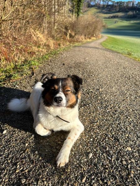 Ronja (25.9.17) ist eine aufgeweckte, sehr verschmuste und fröhliche Hündin. Sie liebt gemütliche Spaziergänge, wälzt sich in der Wiese und buddelt für ihr Leben gerne. Sie ist sehr menschenbezogen und kann auch einfach gemütlich neben einem herlaufen.