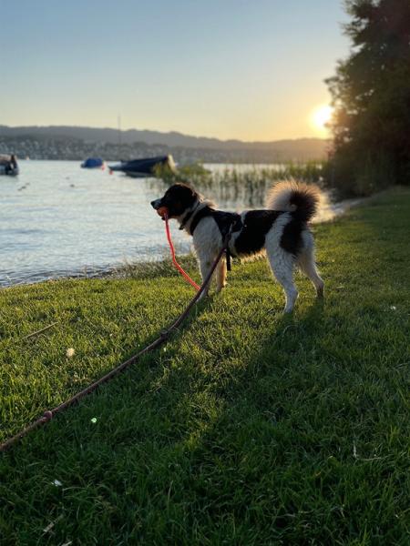 Sie lebt mit einem anderen Hund im selben Haushalt und es gibt keine Probleme. Sie ist allerdings eher dominant und klar die Chefin. Sie mag auch Katzen, die sie kennt, draussen werden sie aber auch mal angebellt, oder Ronja möchte sie jagen.