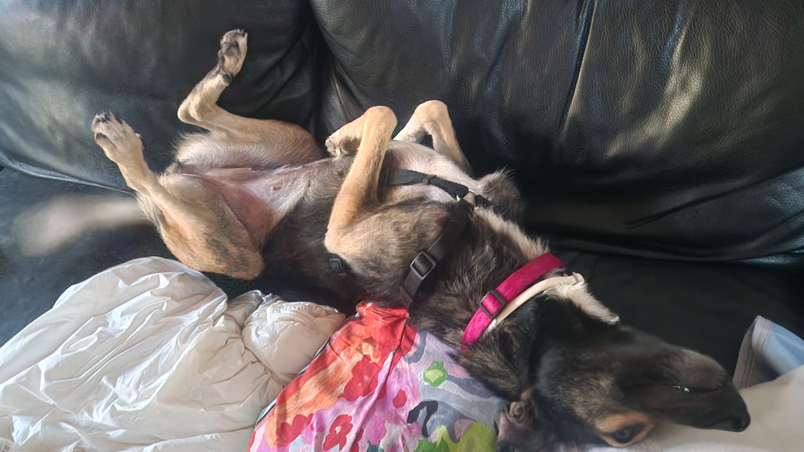 Sie kommt aus einem Shelter in Rumänien,  wo die Hunde schwer vernachlässigt wurden.
