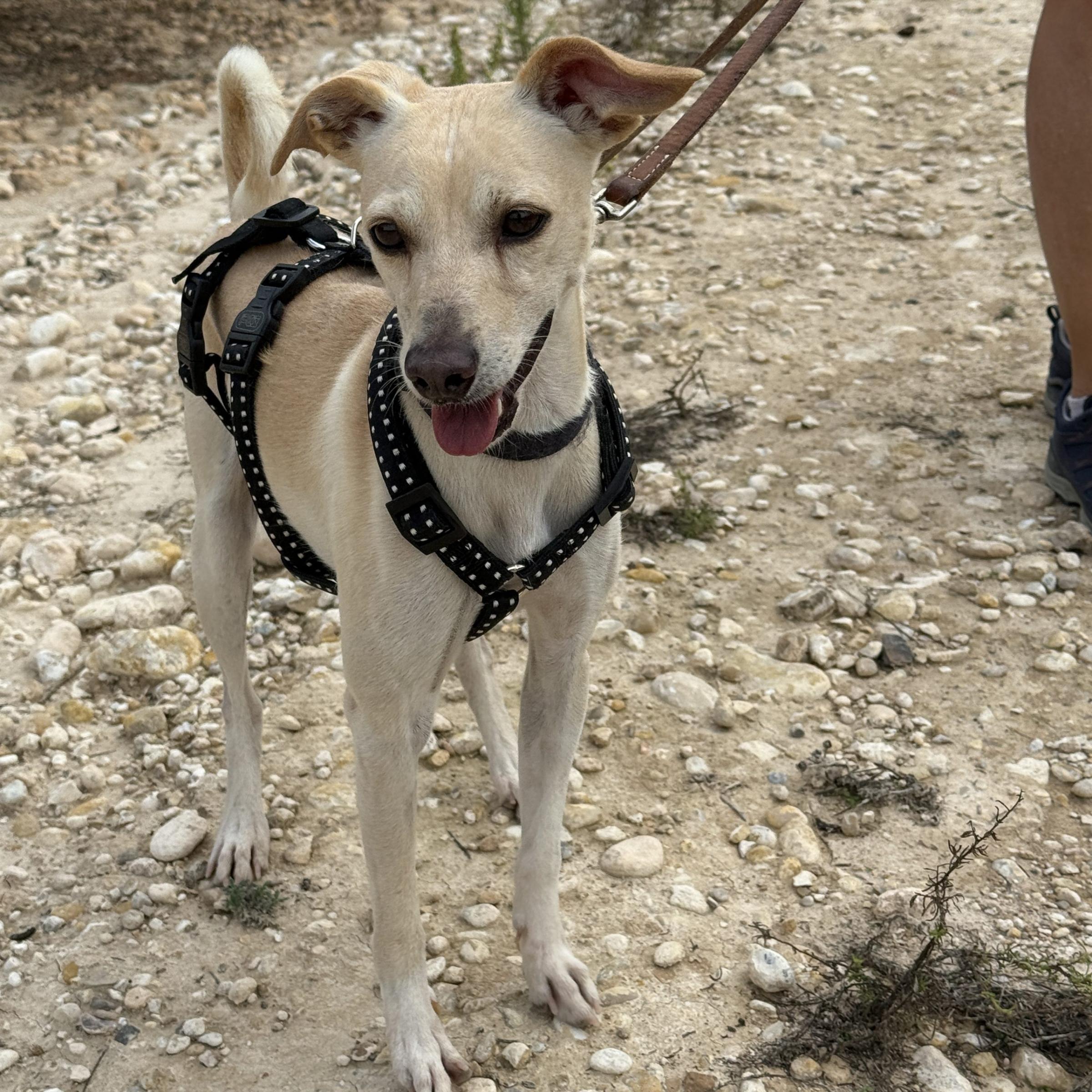 Silvester, der liebevoll Erdmännchen genannt wird, weil er sich gerne auf die Hinterbeine stellt, um seine Umgebung zu beobachten, ist ein sehr anhänglicher Hund. Er versteht sich gut mit anderen Hunden, kann beim Spiel zu Beginn jedoch etwas stürmisch sein. Auch in der Perrera, dem staatlichen Tierheim, lebte er zeitweise mit mehreren Hunden zusammen und hatte dabei keinerlei Probleme. An der Leine läuft Silvester gut.