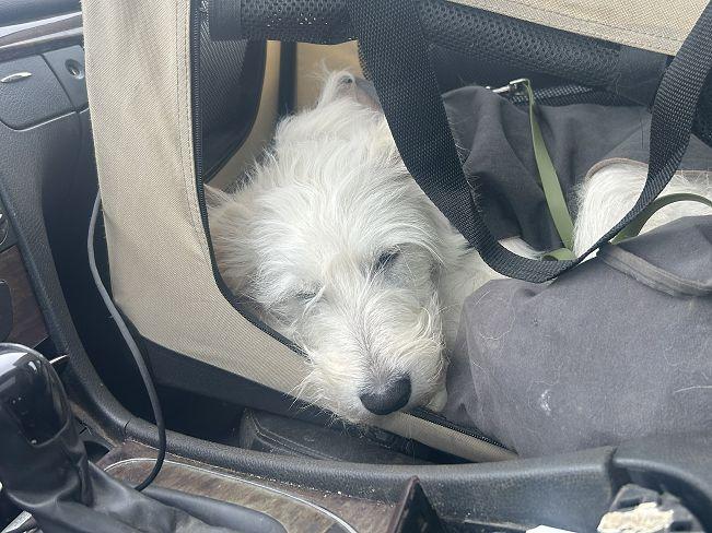 Snoopy darf sein Pflegefrauchen unter der Woche mit ins Büro in der Stadt begleiten und schläft dort ruhig, so dass man ihn kaum bemerkt. Die Wochenenden verbringt er in ländlicher Umgebung mit Hof und Stall und zeigt keinen Jagdtrieb.