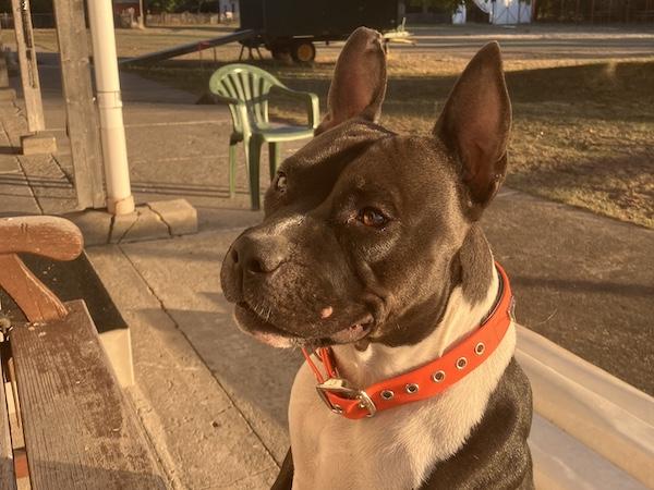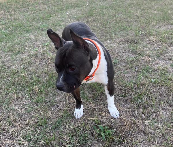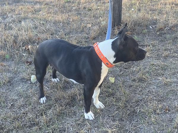 Stella sieht aus wie ein Bodybuilder, sie ist sehr kräftig, muskulös, kompakt und hinten etwas überbaut. Sie ist eine sehr freundliche, liebe, sensible, aufgeschlossene und anhängliche Hündin. Sie holt sich gerne Streicheleinheiten ab, mag, wenn man sich um sie kümmert und ihr