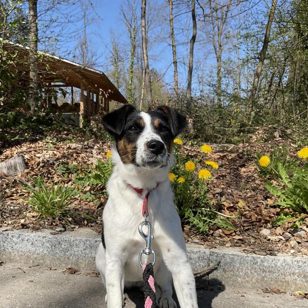 Szilva läuft sehr gut an der Leine und geniesst es draussen die Welt zu entdecken, unbekanntes kann sie noch etwas verunsichern.