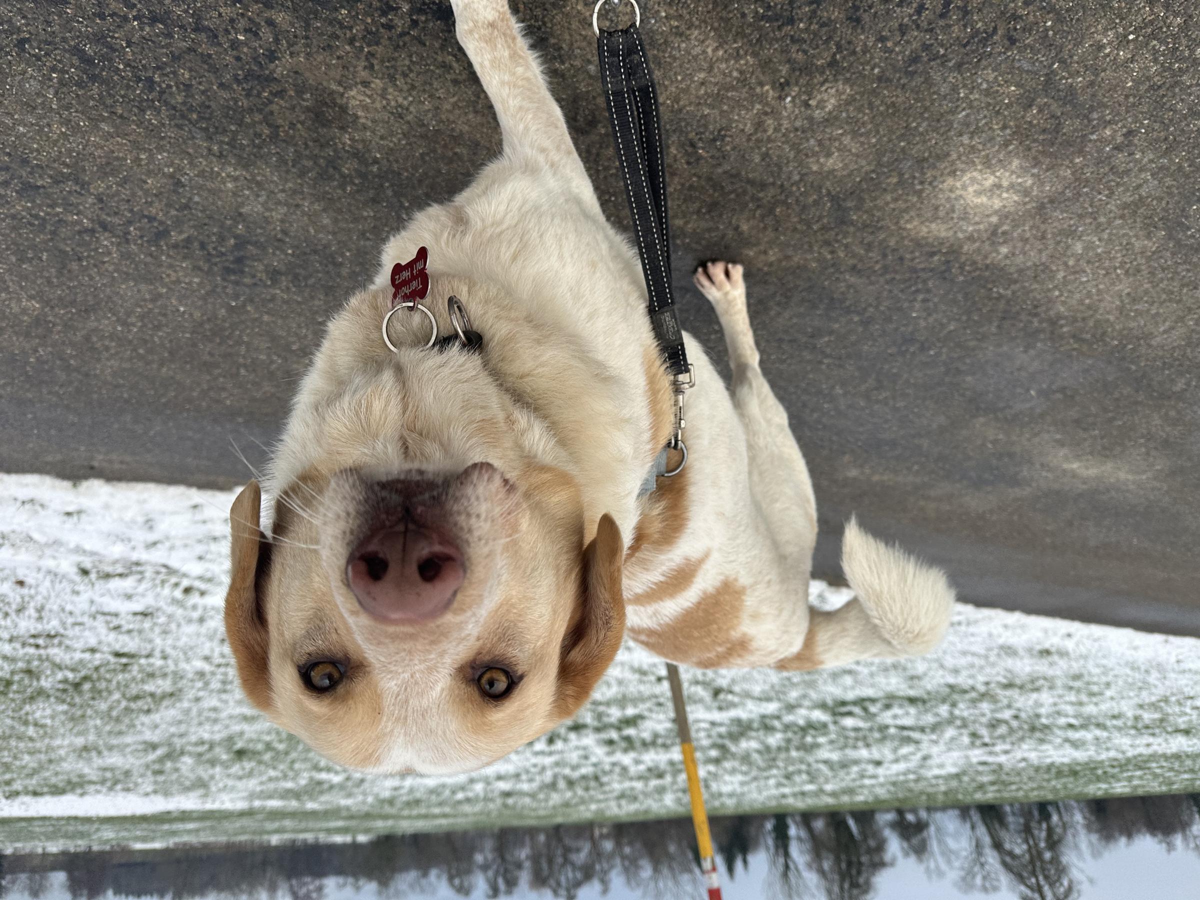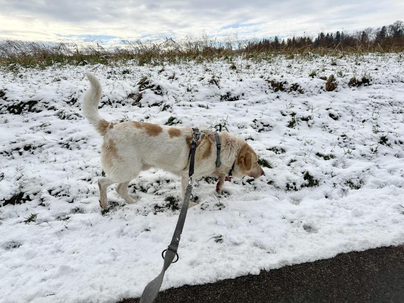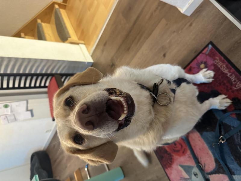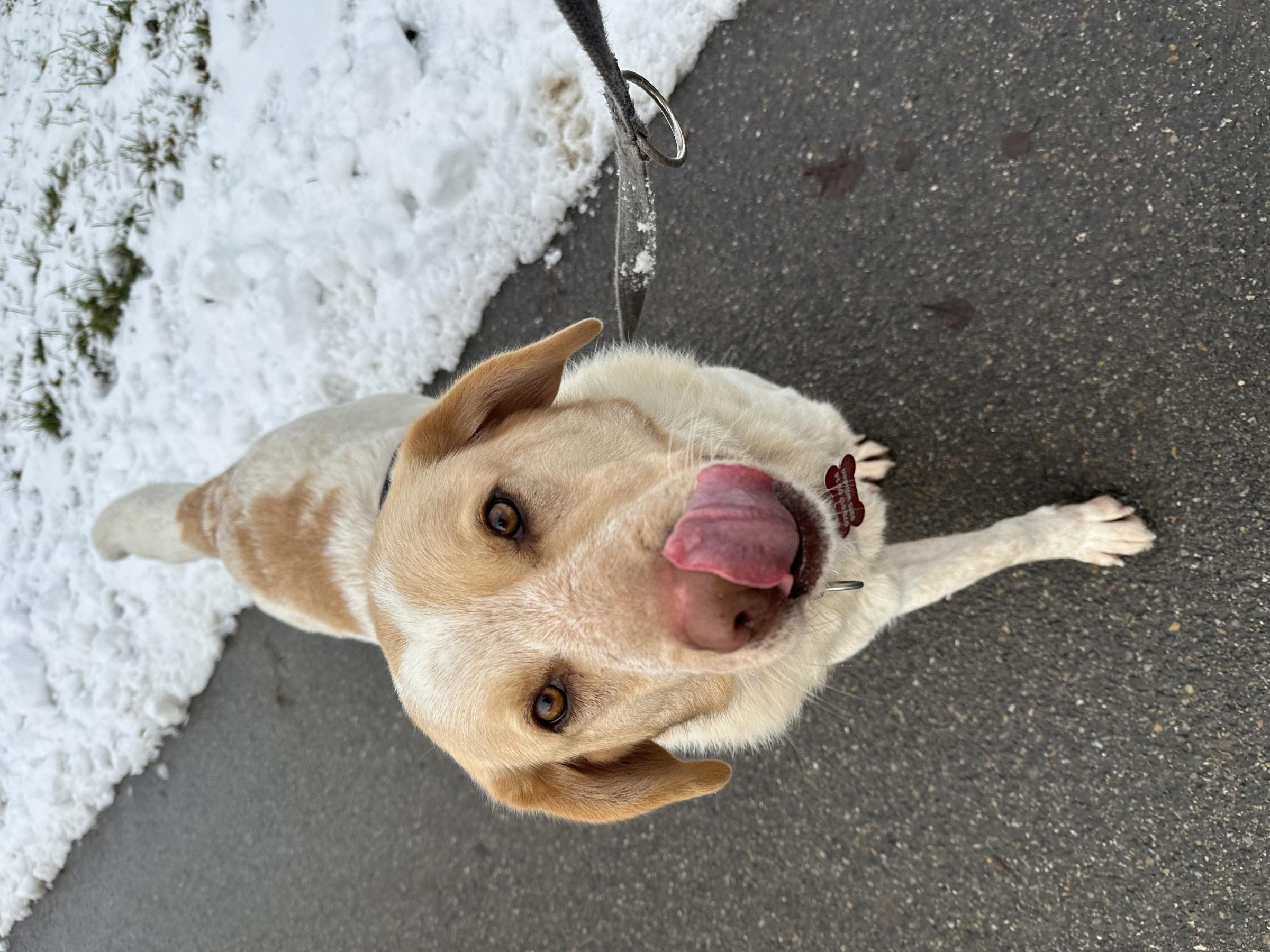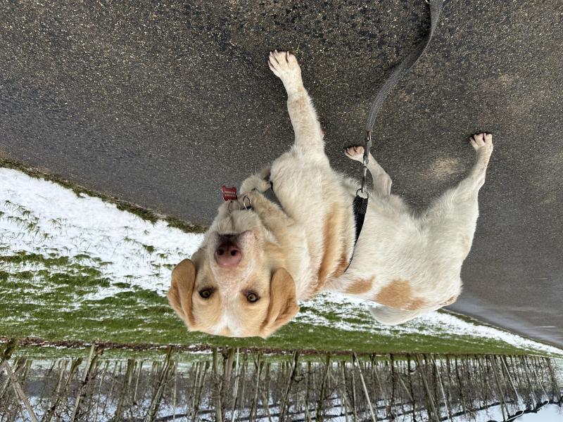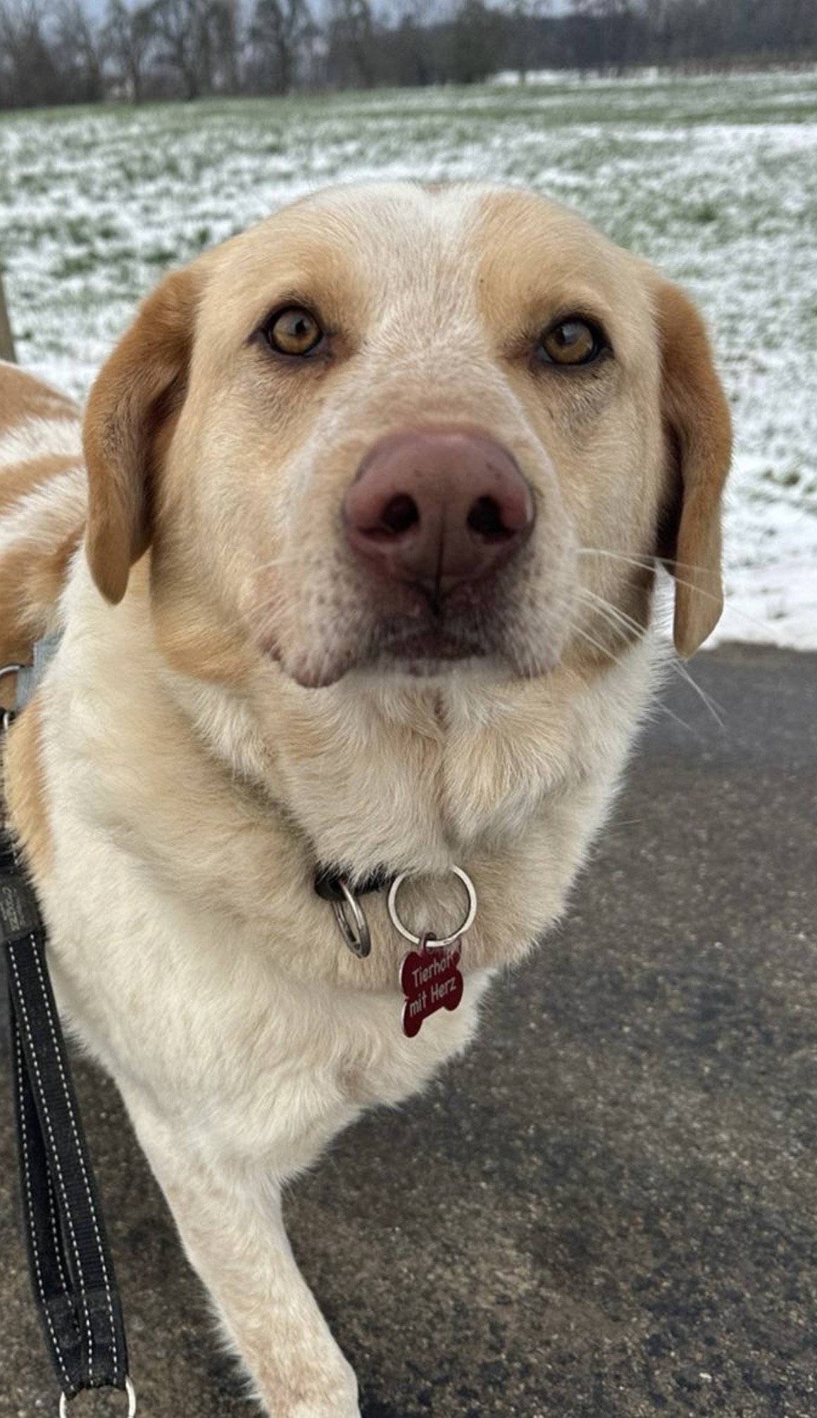 An der Leine läuft Thor entspannt und kommt mit anderen Hunden klar. Thor wiegt über 30 kg, ist kastriert, wird auf ca 5 Jahre geschätzt. Er ist ein Labrador Mischling.