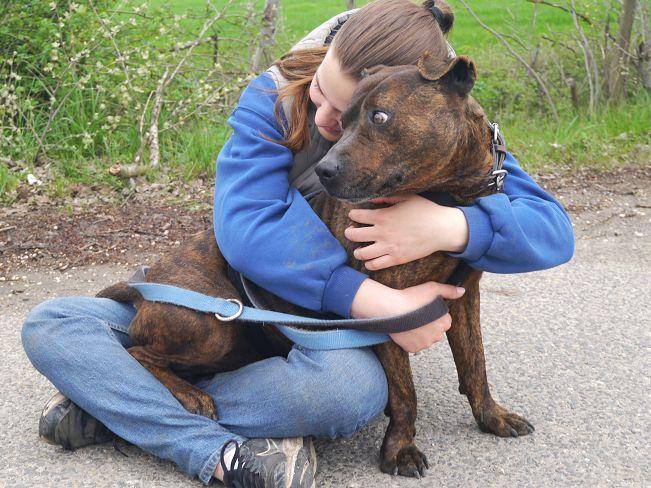 Vegas ist ein aktiver, neugieriger und bewegungsfreudiger Entdecker. Leider hat er viel zu selten die Gelegenheit, seine Abenteuerlust zu stillen, denn für regelmäßige Spaziergänge bleibt im Heim einfach zu wenig Zeit. Wird er dann mal aus dem Zwinger geholt, ist er zunächst einmal sehr aufgeregt und hippelig und zieht einen etwas durch die Gegend. Das legt sich aber nach einer Weile und dann läuft er sogar recht ordentlich an der Leine. Und er findet dann sogar auch noch die Muße für ein paar Kuscheleinheiten, denn auch das mag er sehr. Im Video vom Apr-25 sieht man ihn zunächst mit einem der bekannten Pfleger und später mit einem ihm unbekannten Mädchen. Bei dem dort auch stattfindenden Photoshooting hat uns der gutgelaunte Vegas mit seinen lustigen Ohren eine Vielzahl an ulkigen Gesichtausdrücken angeboten :-).