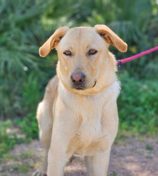 Die junge Mischlingshündin Winni wohnt seit dem 02. April 2026 bei Monika im Refugio. Sie kam aus der Perrera in Vinaros und wurde dort abgegeben, den Grund dafür kennen wir leider nicht. Nun wartet die freundliche Winni bei Monika auf ihr für immer zu Hause. Im Zwinger, in der gemischten Gruppe, ist sie mit allen Artgenossen gut verträglich und drängt sich neugierig ans Gitter wenn Besuch kommt. Die hübsche Winni zeigt sich offen, menschenbezogen und recht verspielt.