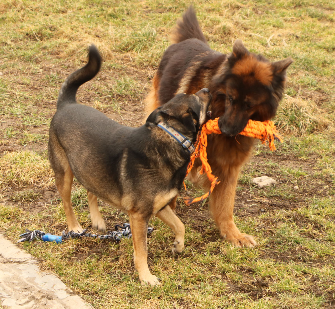 Zara ist bereits seit Nov’ 23 in Bogu. Bei ihrer Ankunft im Tierheim war sie ein schmerzgeplagtes Häufchen Elend (siehe Eintrag vom 5.12.23 unter Aktuelles: “Notfall Zara”) – nun ist sie eine fröhliche, sehr menschenbezogene charmante Schäfi-Dame. Damals waren degenerative Veränderungen an der Wirbelsäule und beiden Hüftgelenken festgestellt worden. Ein sehr kompetentes Spezialisten- Team (Veterinär und Hundephysiotherapeutin) riet von einer OP ab; stattdessen empfahlen sie konsequenten Muskelaufbau.