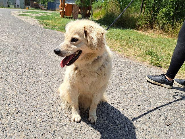 Die geschätzt im Februar 2023 geborene Zoe streunte Anfang Juli 2025 auf der Straße in einem sehr heruntergekommenen Vorort von Cegléd umher, wo es in der Vergangenheit schon zu vielen Beschlagnahmungen von Hunden wegen schlechter Haltung und Vernachlässigung gekommen ist. Eine tierliebe Passantin schaute nicht weg und verständigte das Tierheim, so dass ein Teammitglied die zutrauliche Hündin problemlos anlocken und ins Heim bringen konnte.