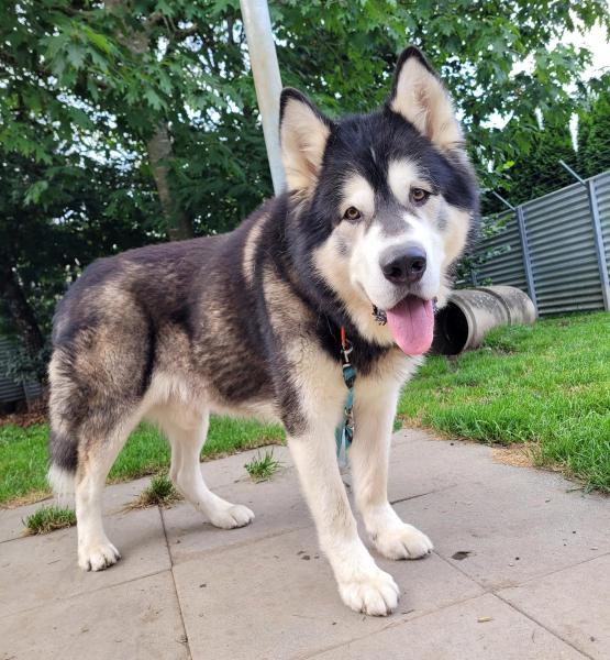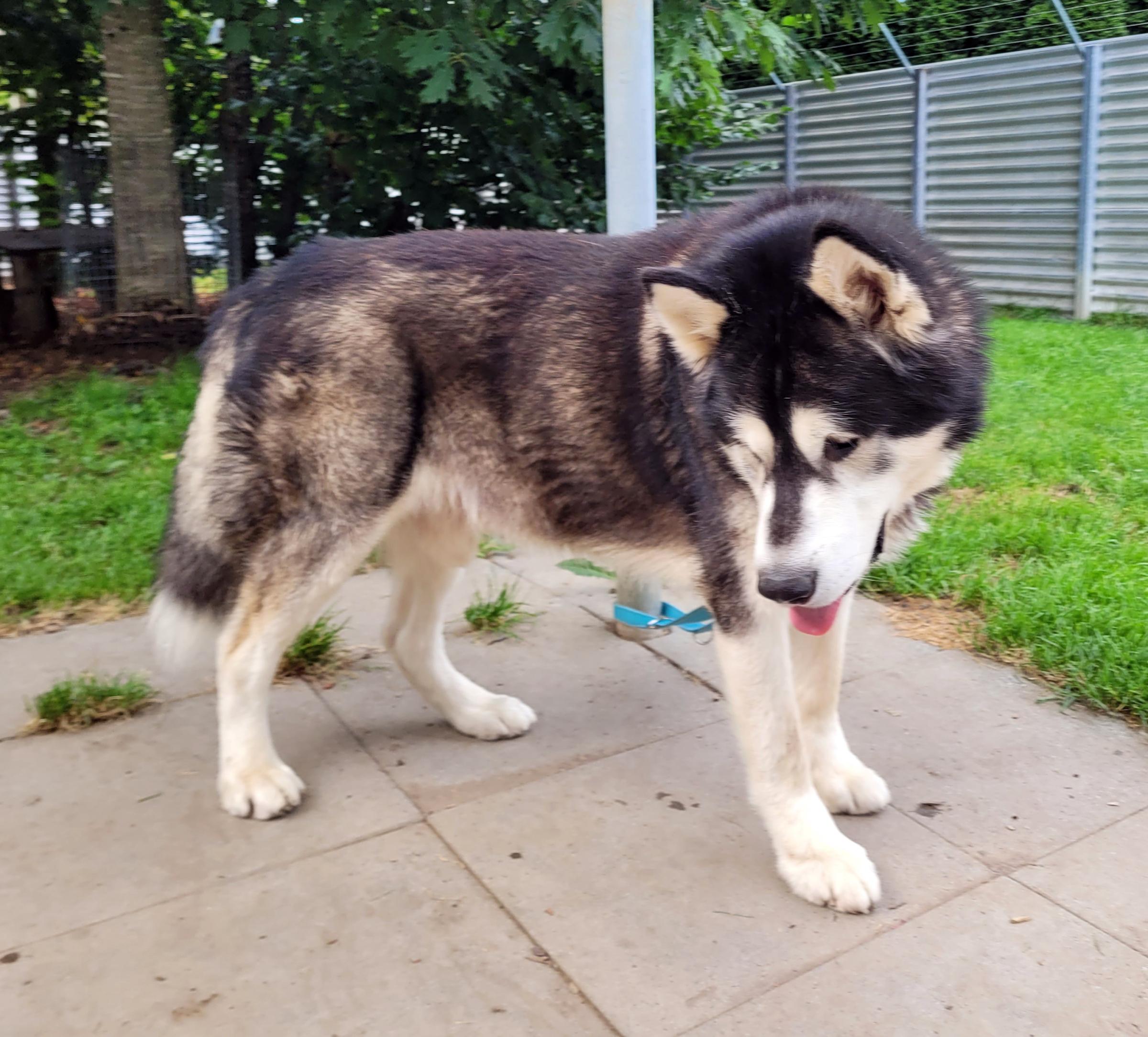 Ich bin meinem früheren Besitzer weggenommen worden, er hatte andere Interessen als an meinem grossen Malamute-Herz und ich sass oft auf einem Balkon, der auch mein Klo war. Pflege bekam ich wenig bis keine, genauso wie ausreichend Bewegung. Hier in meinem vorübergehenden Zuhause haben sie mich aber wieder hübsch gemacht. Ich wurde auf Diät gesetzt, naja, es hiess es sei gesünder für mich. 60 kg wog ich, jetzt bin ich 51 Kg. Wie gesagt, ich bin ein grosser Junge. Ich bekam ja Besuch von Séverine, sie hat Zuhause auch einen von meiner Sorte. Sie meinte, ich sei richtig gross, ja gross, richtig gelesen, nicht mehr dick!