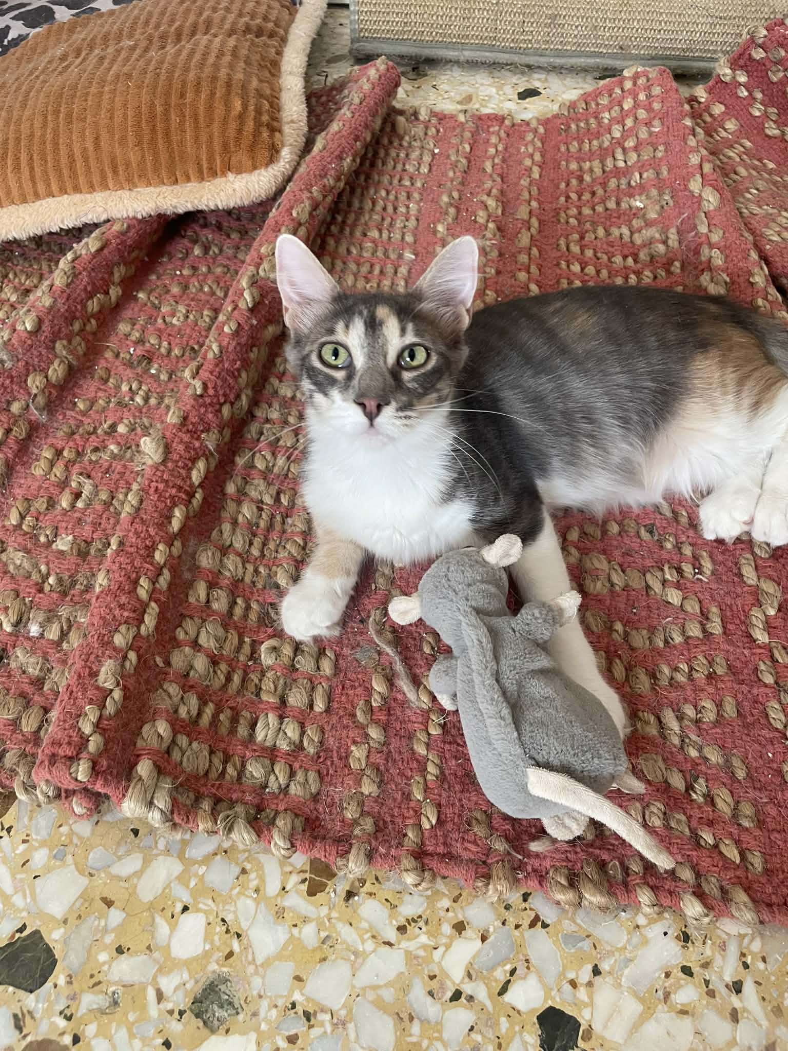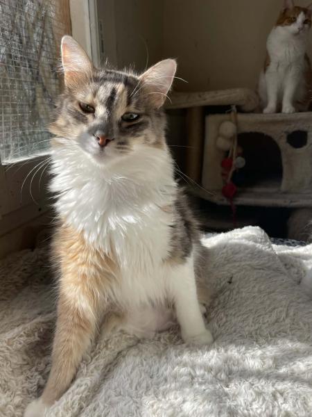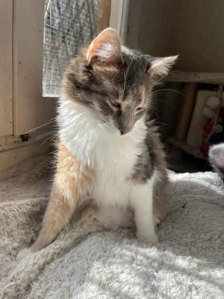 Adriana, das kleine Mädchen, ist eine wunderschöne pastellfarbige Katze, die deutlich kleiner als ihre Brüder ist. Anfangs etwas scheu, nähert sie sich Menschen erst, wenn sie sich sicher fühlt. Sie spielt gerne, bleibt oft in der Nähe ihrer Brüder und versteht sich gut mit anderen Katzen. Gleichzeitig genießt sie es, sich hin und wieder zurückzuziehen und ihre Ruhe zu haben.