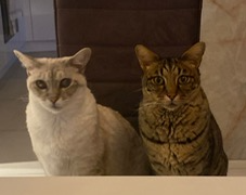 Die Besitzer der 7j. Geschwister Akira&Luna sind derzeit aufgrund familiärer Veränderungen überfordert. Keiner hat mehr Zeit und Muse für die beiden, sie kommen einfach viel zu kurz. Darum suchen sie jetzt ein neues Zuhause, wo sie wieder im Mittelpunkt stehen dürfen. Akira&Luna sind Savannah-Katzen, Geschwister, kastriert, geimpft, gechippt, gesund, stubenrein und wohlerzogen. Sie brauchen Platz (Haus oder grosse Wohnung) und kennen inzwischen auch Freigang in verkehrsarmer Umgebung. Und hätten das wohl auch gern wieder. Wobei auch ein grosser gesicherter Garten reichen würde, Hauptsache Gras unter den Pfoten. Und Katzentörli, damit insbesondere Akira nach Herzenslust raus und rein kann. Kater Akira ist der Schüchterne von den beiden. Sobald er aber auftaut, ist er Savannah-typisch lebhaft und fordert seine Menschen. Seine Lieblingshobbies sind spielen und Mäuse fangen! Luna dagegen ist so gar nicht Savannah-typisch, sie liebt’s gemütlich und kuschelt gern, auch im Bett. Sie hat nur ein Lieblingshobby: Relaxen! Beide mögen keine kleinen Kinder und keine anderen Haustiere, grössere Kinder ab ca. 12j. sind kein Problem. Eine Familie wär perfekt für sie, oder jemand, der viel Zeit mit ihnen verbringen will, sich mit ihnen beschäftigt und sie insbesondere auch geistig fordert. Akira&Luna sind derzeit in Berikon/AG zuhause.