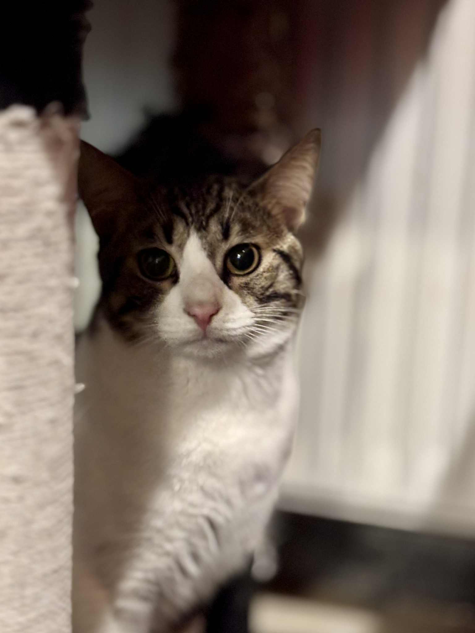 Mit anderen Katzen versteht sich Alfie sehr gut. Eine freundliche, nicht dominante Samtpfote an seiner Seite würde ihm Sicherheit geben und ihm helfen, sich noch wohler zu fühlen.