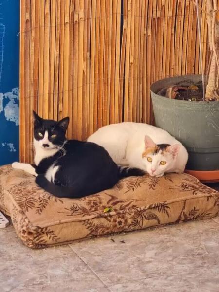 Sie ist sanft und kompatibel und geprägt durch Katzen jeden Alters. Und sie ist die beste Freundin Dalias. Die zwei stecken ihre Näschen in alles und die zwei sind zärtliche Freundinnen. Das beweist schon das Foto auf dem sie (noch im rosa Kastrationsbody) mit Dalia kuschelt.
