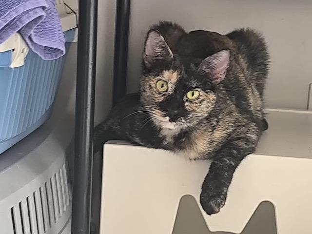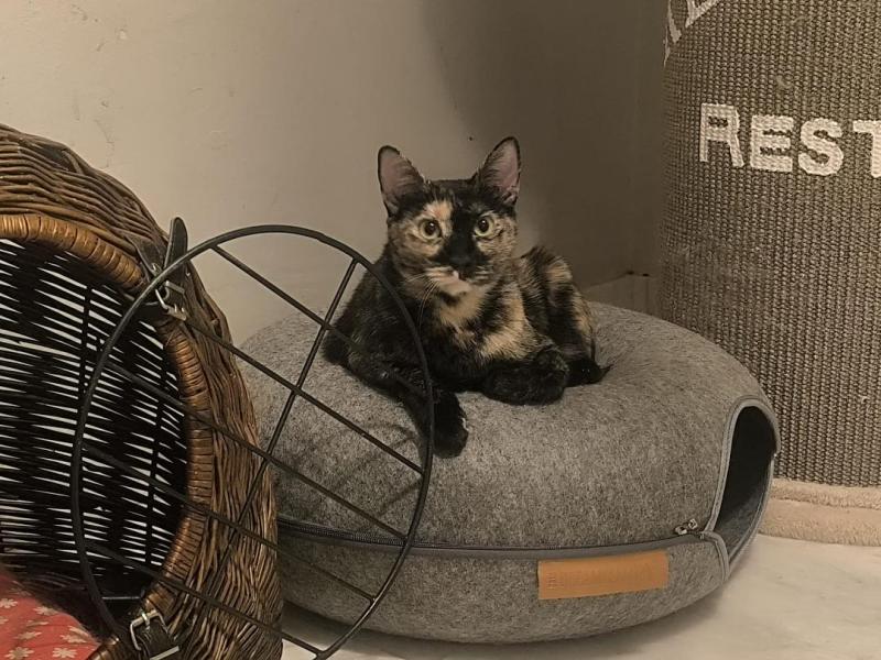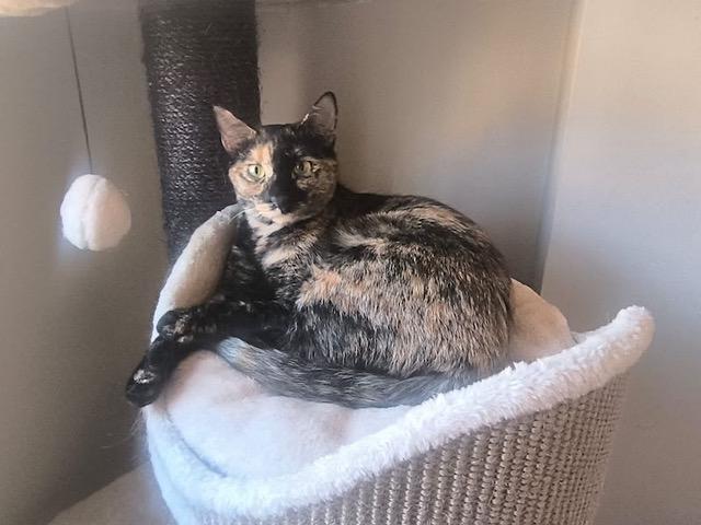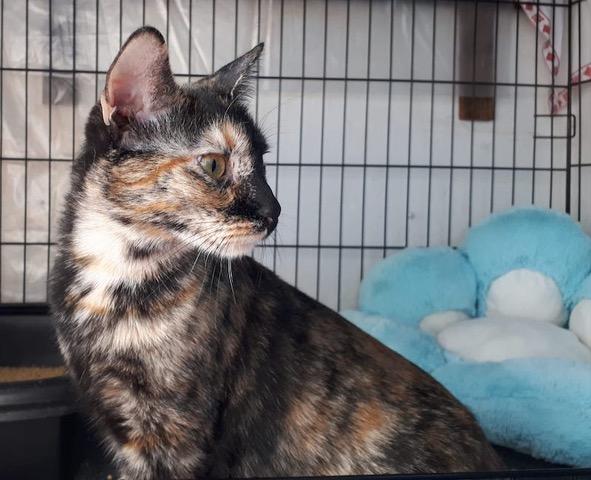 Das hübsche Schildpatt-Katzenmädchen Ambar verlor sein Zuhause, da sein Frauchen umgezogen ist und es nicht mitnehmen konnte. Nun wartet Ambar in der Auffangstation auf ein liebevolles Zuhause.