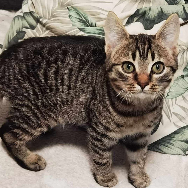 Der hübsch getigerte Katzenbub Balou wurde mit seinen Geschwistern auf dem Feld ausgesetzt. Kinder fanden die Waisenkatzen und brachten sie in die Auffangstation der Pfotenhilfe Mogli.