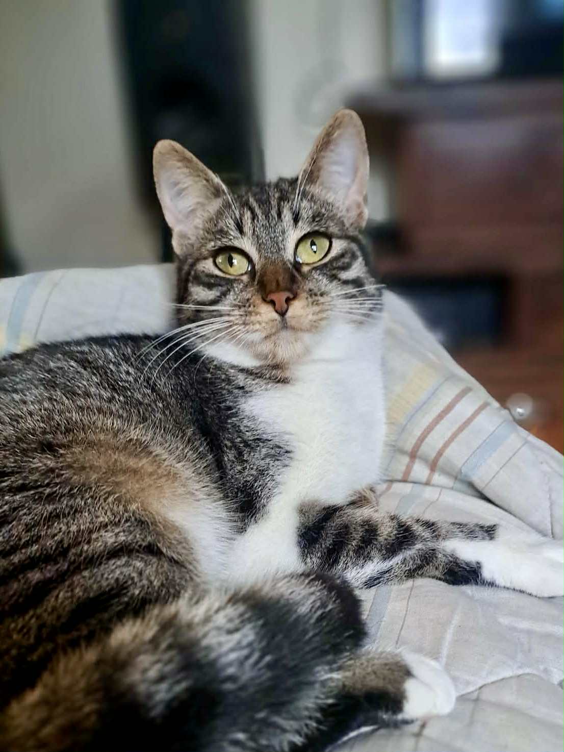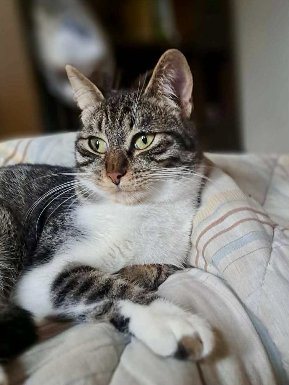 Bastet ist eine unglaublich liebe, sanfte und menschenbezogene Katze. Sie sucht die Nähe zu ihren Menschen, liebt Streicheleinheiten und genießt jede Zuwendung. Ihr Herz ist offen, trotz allem, was sie erlebt hat. Mit anderen Katzen und auch mit Hunden versteht sie sich wunderbar – sie wünscht sich einfach nur Anschluss und Geborgenheit.