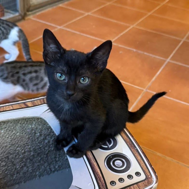 Dieses schwarze Kätzchen ist ein kleiner Schatz – sanft, liebevoll und sehr anhänglich. Gleichzeitig ist er abenteuerlustig und verspielt, entdeckt neugierig seine Welt und bringt mit seiner fröhlichen Energie viel Wärme und Freude ins Zuhause. Mit seiner zarten, freundlichen Art sucht er gern die Nähe seiner Menschen.