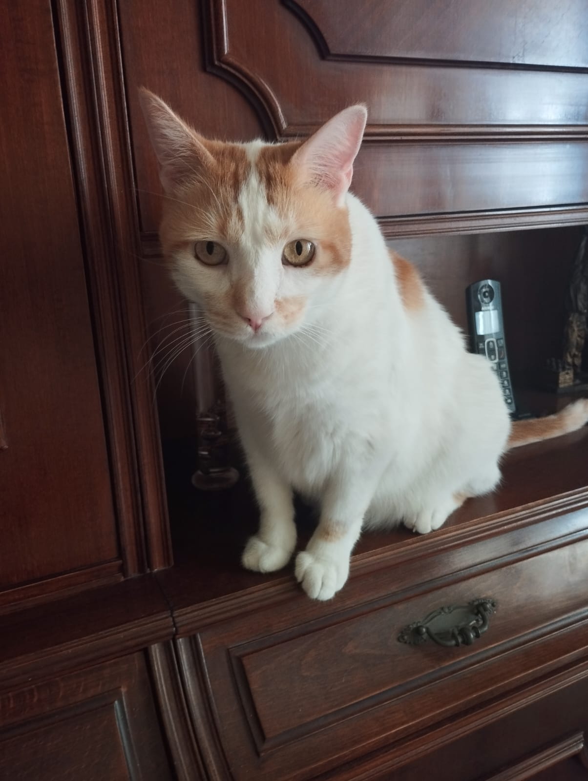 Der gross gewachsene rot-weisse Kater wurde im Sommer 2024 verletzt auf der Strasse aufgefunden und von einem engagierten älteren Herrn in Malaga bei sich aufgenommen. Die Verletzungen stellten sich als Blessuren heraus, die von einem Kampf mit Artgenossen herrührten. Blanquito schien sehr erleichtert, dass er von dem harten Leben auf der Strasse erlöst wurde und wieder einen warmen Ort mit regelmässigen Futtergaben und Streicheleinheiten hatte. Blanquito zeigte seine tiefe Dankbarkeit gegenüber dem Mann mit lautem Schnurren und Zärtlichkeiten.
