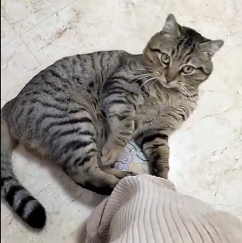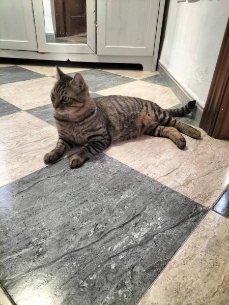 Der hellgraue Tigerkater wurde in den Strassen einer südspanischen Kleinstadt aufgefunden. Er war verschüchtert und es dauerte mehrere Tage bis die Tierschützer in einfangen konnten. Der Hunger und das angebotene Futter gaben den Ausschlag.