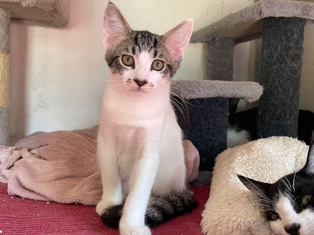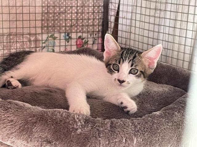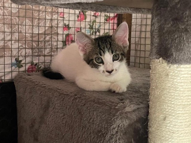 Das hübsche Katzenkind Dama wurde mit der Mama und den beiden Geschwisterchen in einer Katzenkolonie gefunden und mit der Falle eingefangen. Nach dem Tierarztbesuch durfte die ganze Familie in die Auffangstation ziehen.