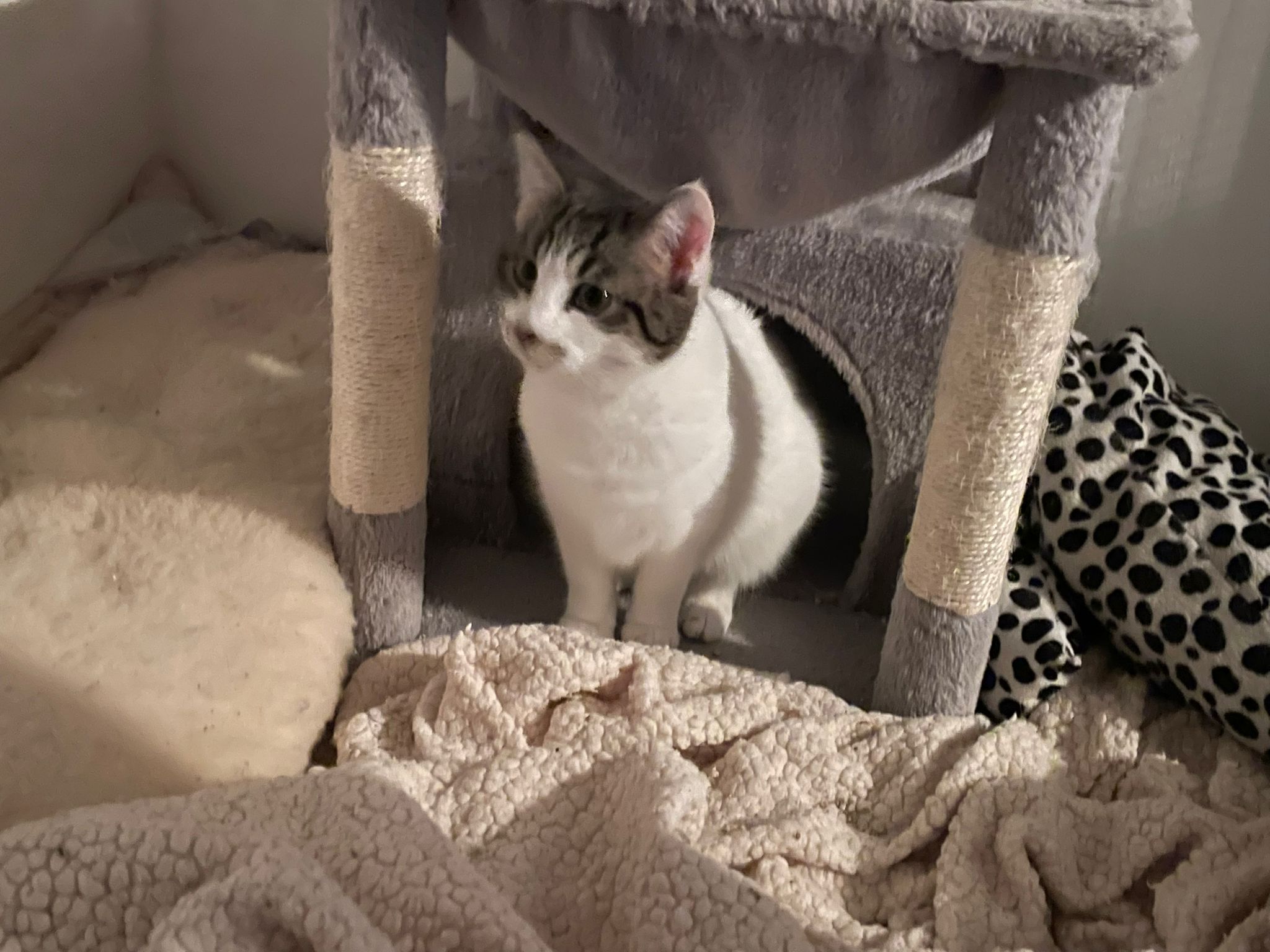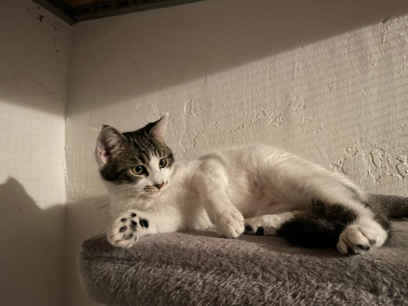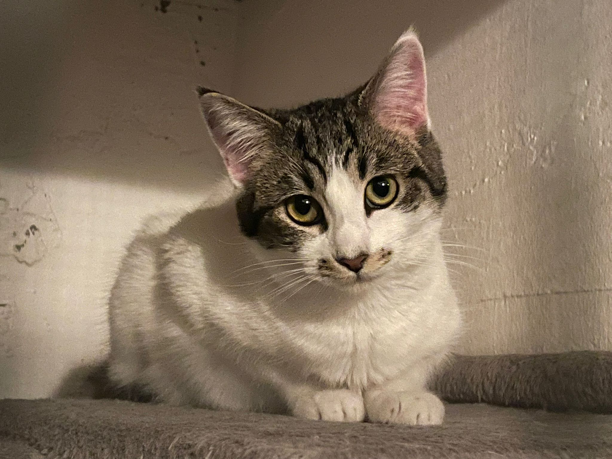 Das hübsche Katzenkind Dama wurde mit der Mama und den beiden Geschwisterchen in einer Katzenkolonie gefunden und mit der Falle eingefangen. Nach dem Tierarztbesuch durfte die ganze Familie in die Auffangstation ziehen.