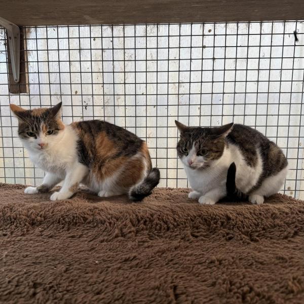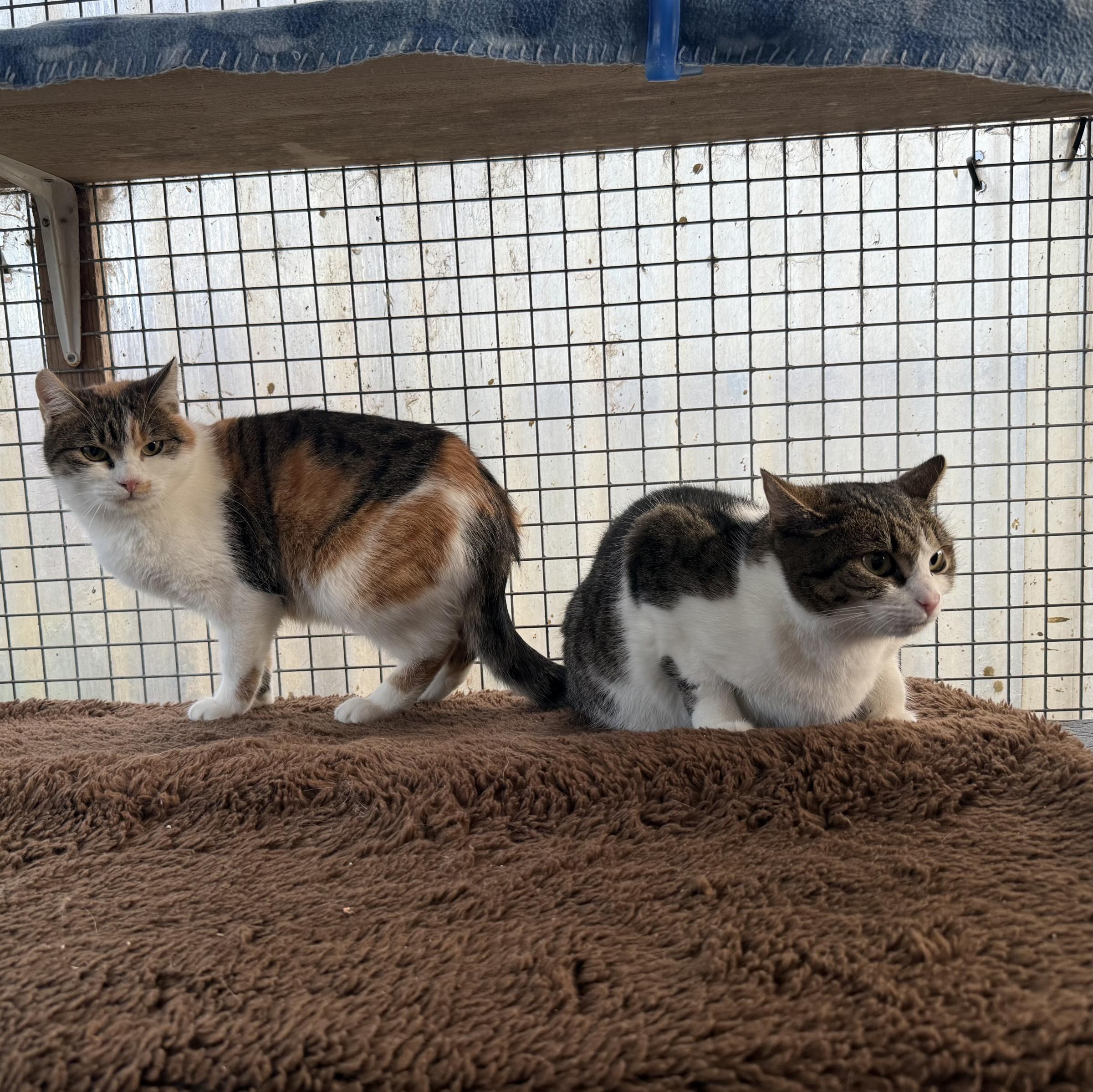 Die zwei suchen gemeinsam ein Zuhause mit Freigang ins Grüne. Dies sollte durch eine Katzenklappe ermöglicht werden.