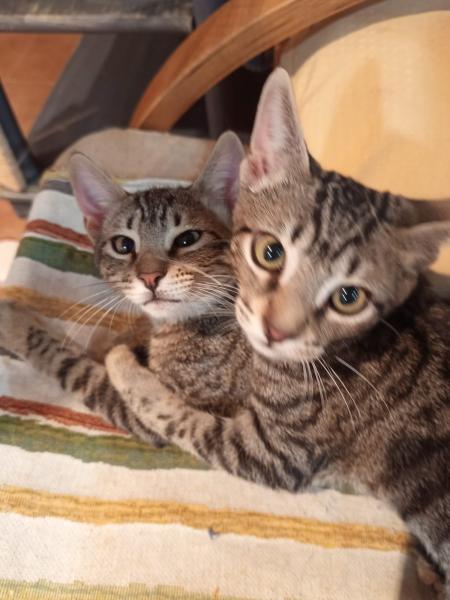 Die beiden Geschwisterchen werden von der Pflegestelle als zwei sympathische Katzenkinder beschrieben, welche Menschen mögen. Isaac und Luz sind zwei lebensfrohe Büsis, welche sich kittentypisch verspielt und anhänglich verhalten. Da die beiden unzertrennlich sind, werden sie nur zusammen vermittelt. Mit den anderen Katzen auf der Pflegestelle verstehen sie sich auch gut. Hast du dich in die beiden verliebt? Dann melde dich bei uns!