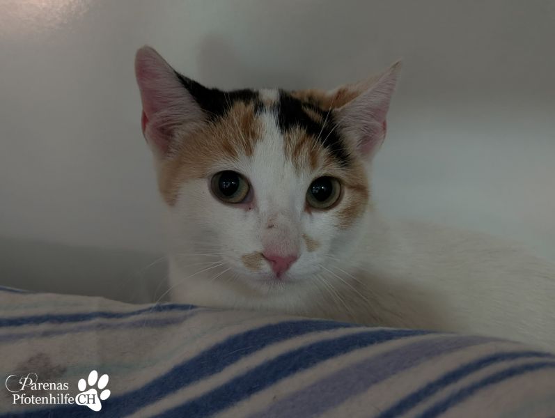 Bei Klea haben wir es mit einer zarten, sehr hübschen Glückskatze zu tun. Anfänglich zeigte sie sich den Menschen gegenüber sehr skeptisch und sprang davon, sobald sich ihr jemand näherte. Doch inzwischen genießt sie es sogar, wenn sie auf den Arm genommen und gestreichelt wird. Bei ihrer eigenen Familie wird Klea sicherlich vollends auftauen.