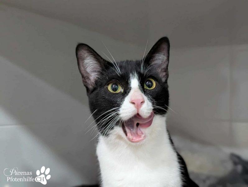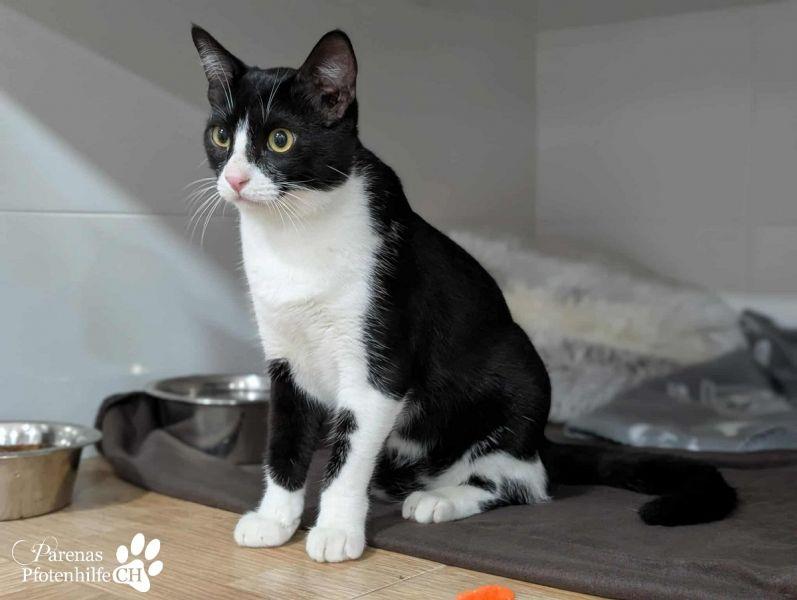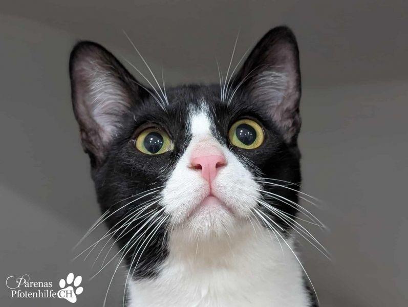 Krypton, der schwarz-weiße Kater mit der hübschen Gesichtszeichnung, ist in jeder Hinsicht ein Traum. Mit seiner ruhigen und verschmusten, aber gleichzeitig verspielten und neugierigen Art ist der zutrauliche Stubentiger eine Bereicherung für jedes Zuhause. Ideal wäre er in einer Familie mit Kindern aufgehoben - denn dieses Leben war er gewohnt, bis sich bei den Vorbesitzern leider eine Allergie entwickelte.