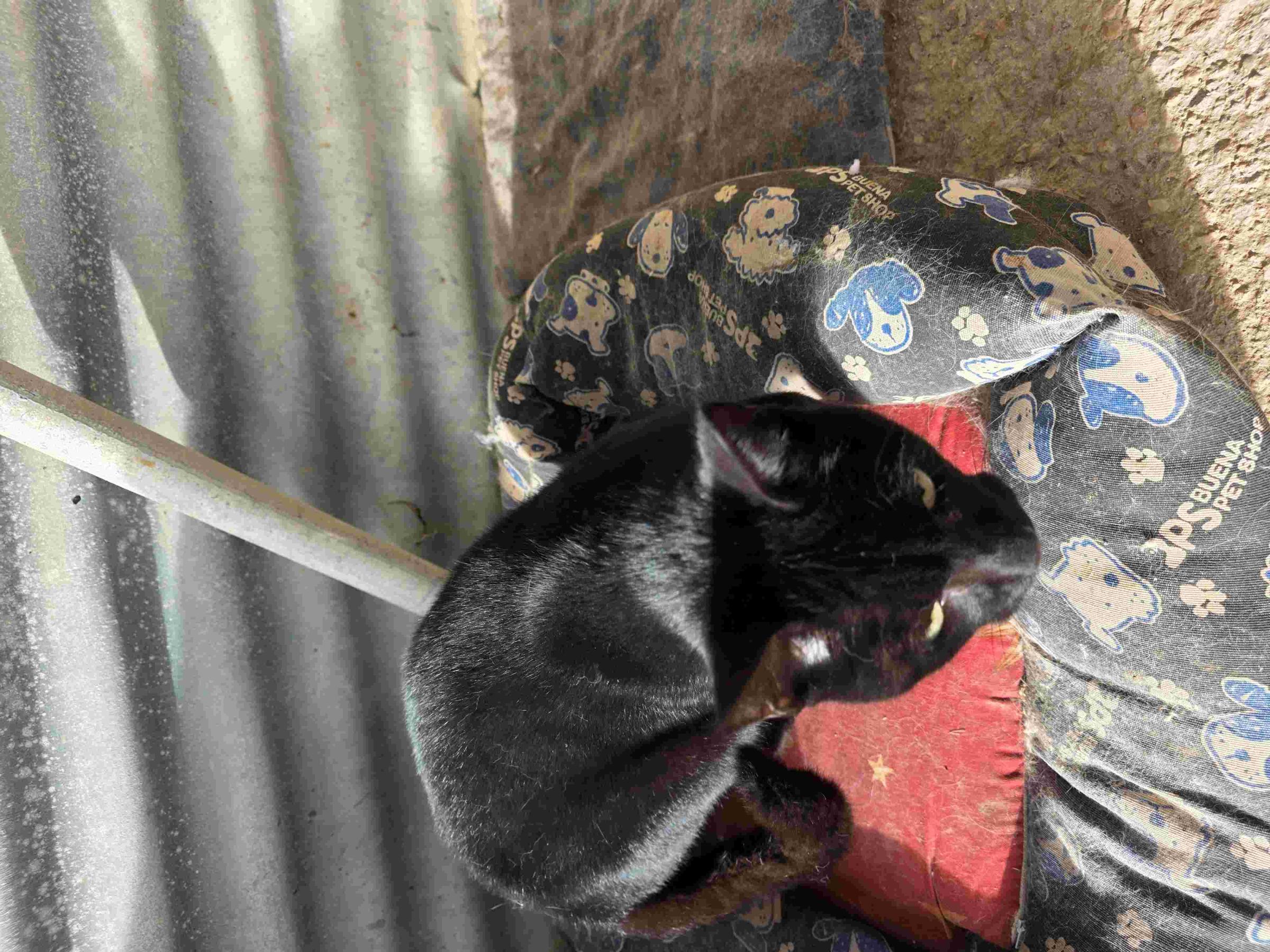 Ladino hat einen Weg hinter sich, den man keinem Tier wünschen möchte. Er wurde in Daya Nueva gefunden – abgemagert, entkräftet und in einem herzzerreissenden Zustand. Ein grosses Loch im Kiefer machte es ihm unmöglich, selbstständig zu fressen. Er stand kurz vor dem Verhungern und wog weniger als die Hälfte seines heutigen Gewichts.