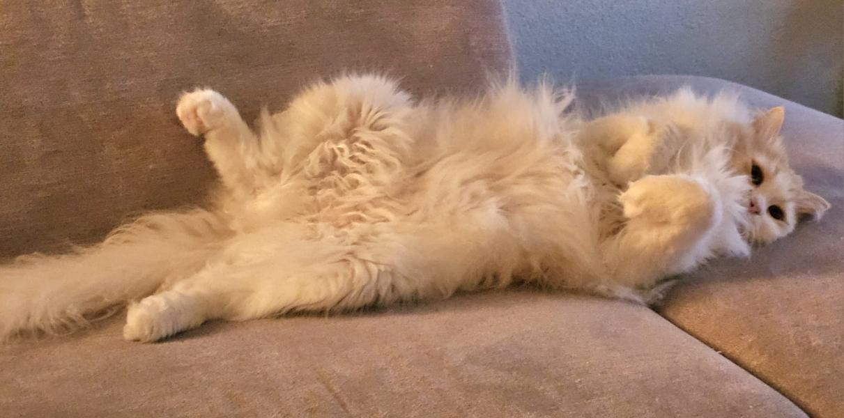 Er schmust super gerne, schläft am liebsten im Bett und will überall dabei sein. Aber – typisch Katze/Kater – gibt er vor, wann geschmust wird.