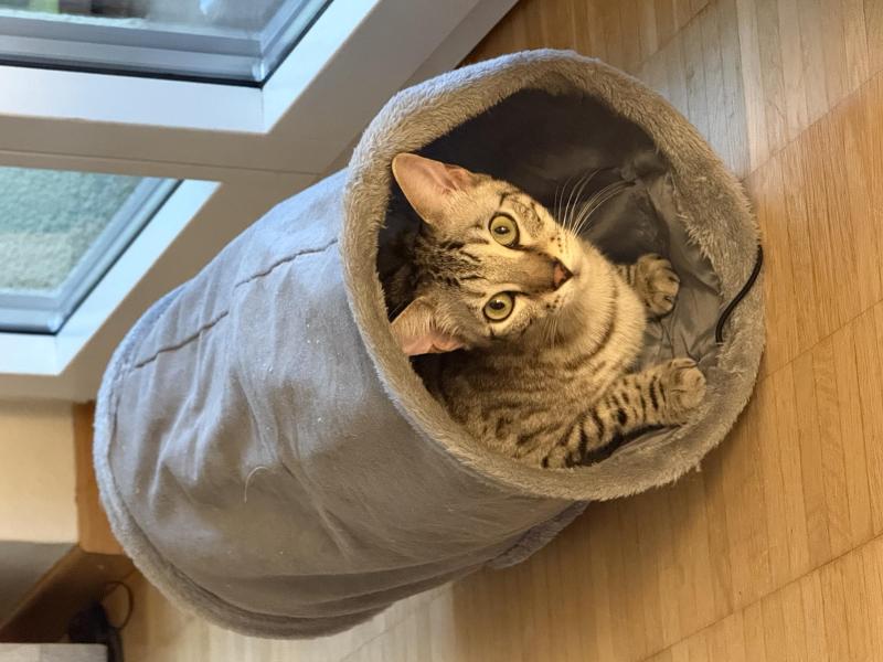 Alternativ eignet er sich auch wunderbar als Zweitkatze – idealerweise zu einem ebenfalls aktiven, verspielten Artgenossen, das seine Energie und seine manchmal etwas stürmische Art versteht und Grenzen setzen kann.