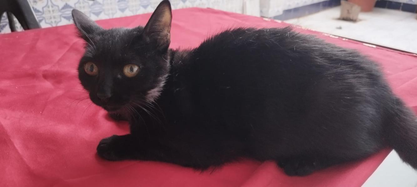 Der hübsche Lolo mit dem nachtschwarzen, glänzenden Fell ist blind. Er wurde auf der Landstrasse im Hinterland von Malaga von einer Touristin als handgrosses Fellbündel mit verklebten Augen aufgefunden. Die lokale Tierschutzorganisation, bei der er abgeben wurde brachte ihn zum Tierarzt. Nach eingehender Untersuchung musste leider festgestellt werden, dass der Sehnerv bei beiden Augen zerstört war.