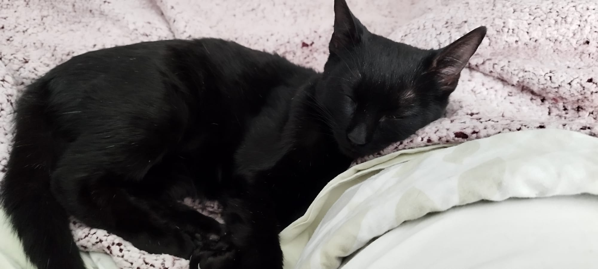 Der hübsche Lolo mit dem nachtschwarzen, glänzenden Fell ist blind. Er wurde auf der Landstrasse im Hinterland von Malaga von einer Touristin als handgrosses Fellbündel mit verklebten Augen aufgefunden. Die lokale Tierschutzorganisation, bei der er abgeben wurde brachte ihn zum Tierarzt. Nach eingehender Untersuchung musste leider festgestellt werden, dass der Sehnerv bei beiden Augen zerstört war.