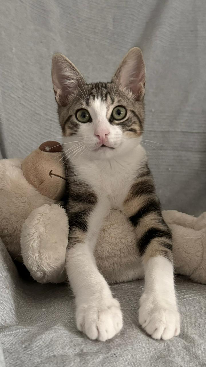 Ziggy (ca. 6 Monate alt) ist eines von vier Kätzchen, die wir in sehr schlechtem Zustand gefunden haben. Leider hat eines seiner Geschwister nicht überlebt. Aber Ziggy kämpfte hart, wuchs gesund heran und wurde zu einem süßen, neugierigen kleinen Jungen.