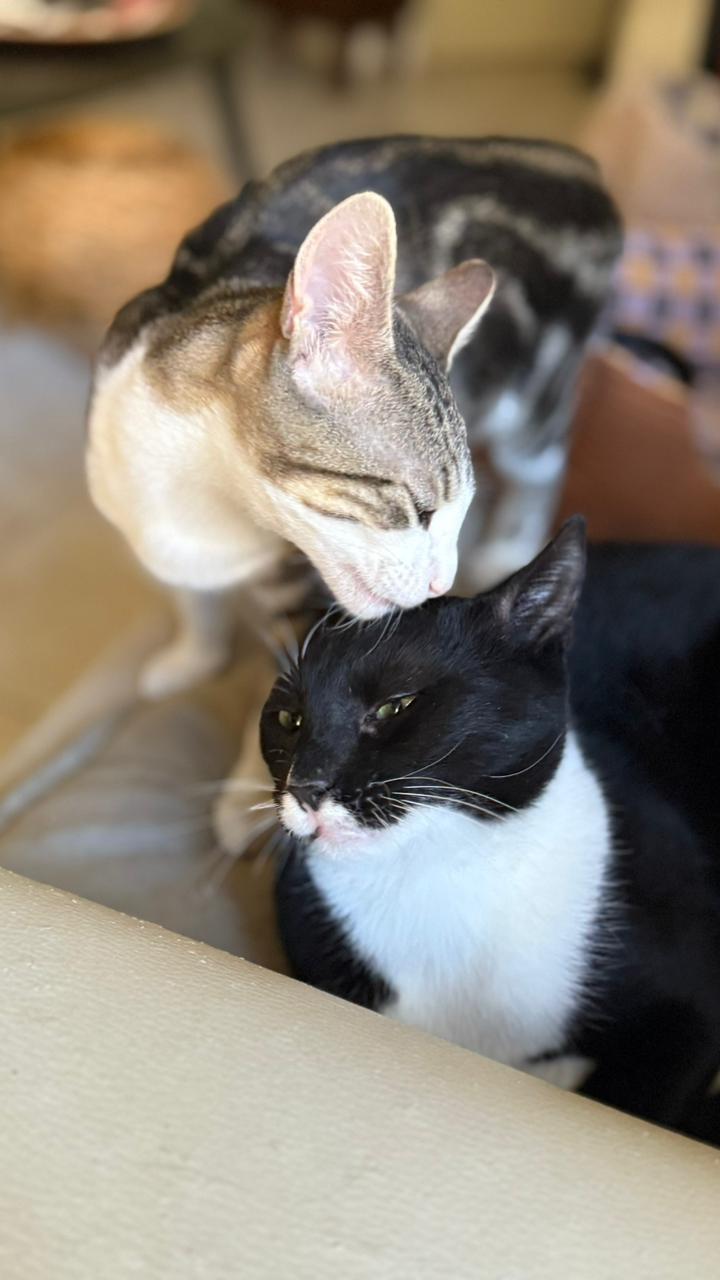 Beide sind vollständig geimpft, gechippt, negativ auf FIV und FeLV getestet und kastriert.