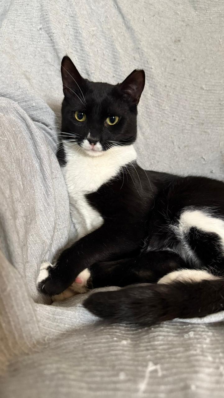 Luca (ca. 1,5 Jahre alt), auch bekannt als „Catman“, wuchs in einer rauen Umgebung auf, in der Menschen nicht freundlich waren. Trotzdem blieb er unglaublich vertrauensvoll, folgte oft Menschen und schmiegte sich an ihre Beine, in der Hoffnung auf Zuneigung und Spiel. Leider haben wir einmal gesehen, wie er weggestoßen wurde. Nachdem wir dies beobachtet hatten, wussten wir, dass wir ihn dort nicht lassen konnten. Dank engagierter Freiwilliger wurde Luca gerettet, kastriert, vollständig vom Tierarzt untersucht und in ein liebevolles Pflegeheim gebracht.