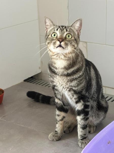 🐱 Lucas ist ein sehr sozialer Kater, sobald er jemanden kennt. Adolfo, der freiwillige Helfer, der ihn in unser Partner-Tierheim gebracht hat, besuchte ihn eine Woche lang morgens und nachmittags, bis Lucas sich eingewöhnt und wieder Vertrauen gefasst hatte. Am Anfang wollte er weder fressen noch seine Medikamente nehmen. Adolfo nahm ihm den Halskragen ab und fütterte ihn liebevoll von Hand.