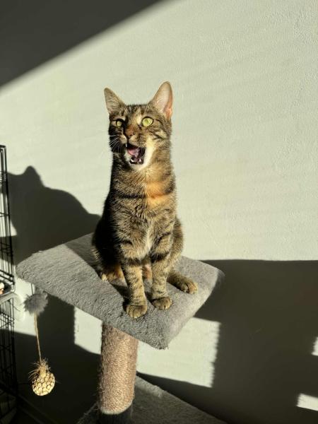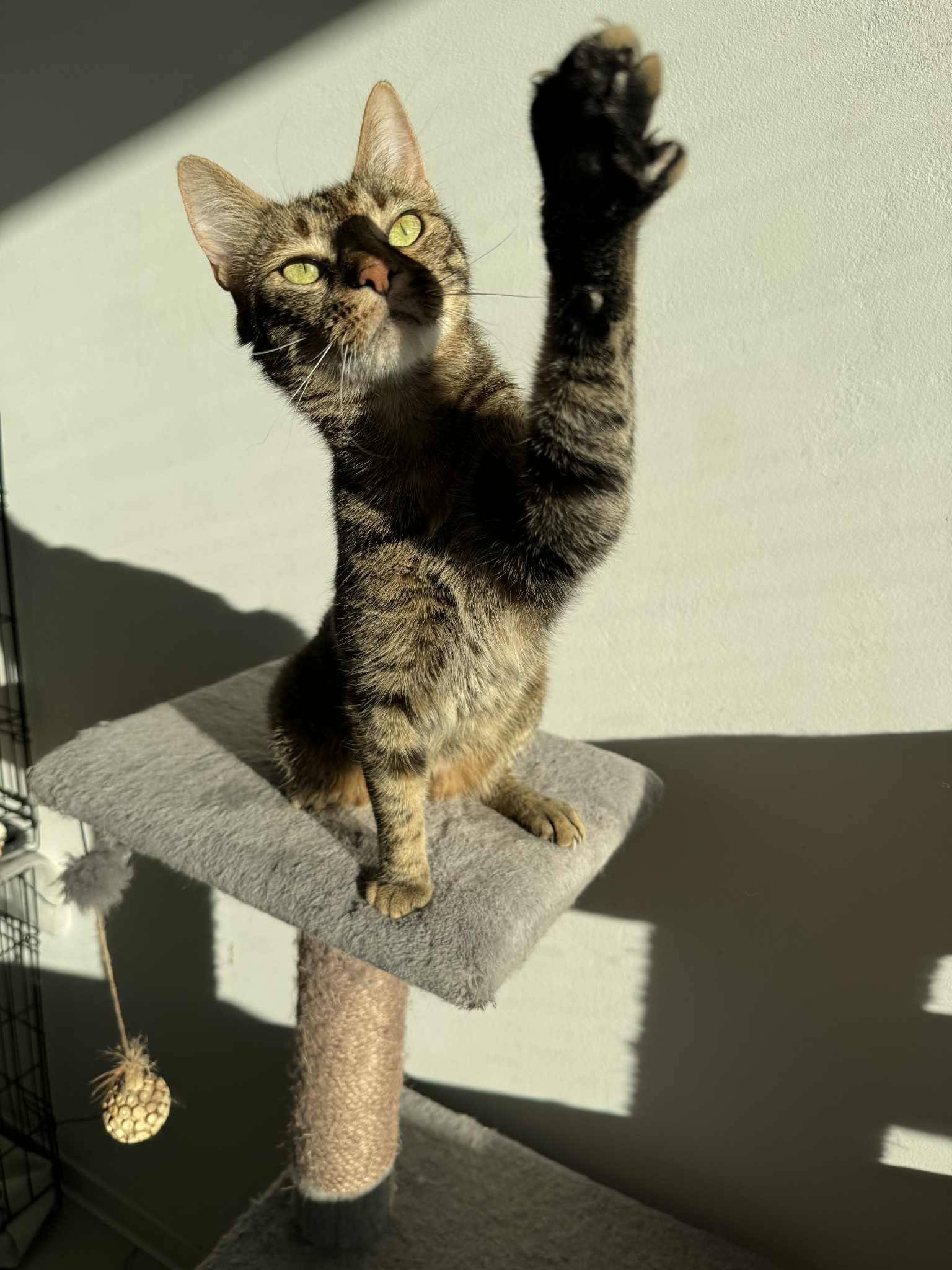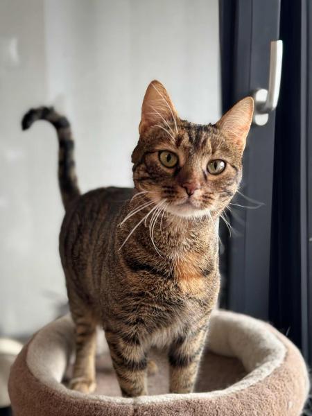 Lujza ist eine etwa 3-jährige Katzendame, die immer noch sehr verspielt ist. Manchmal etwas wild im Spiel, daher nicht für kleine Kinder geeignet. Trotzdem ist sie sehr lieb, dankbar - und besonders glücklich, wenn ihr Bäuchlein voll ist. Sie versteht sich mit anderen Katzen. Freigängerli, fernab von Hauptstrassen und Gleisen