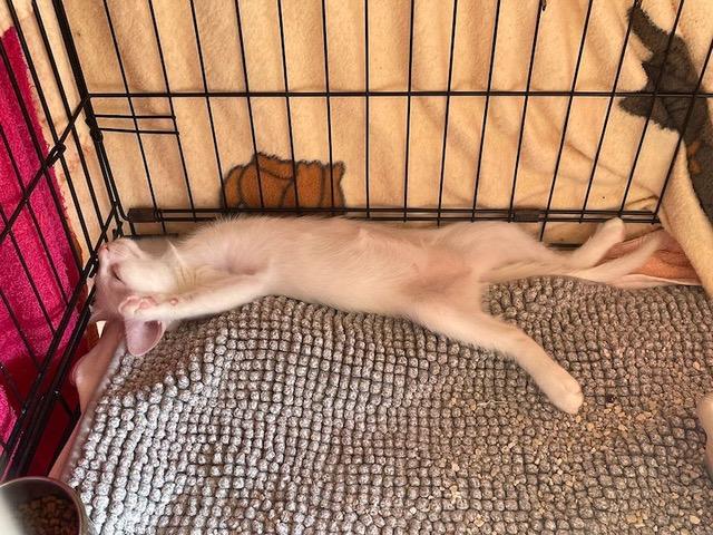 Das schneeweisse Katzenkind Mafalda wurde mit 3 Wochen bei der Polizei abgegeben und in die Auffangstation gebracht.