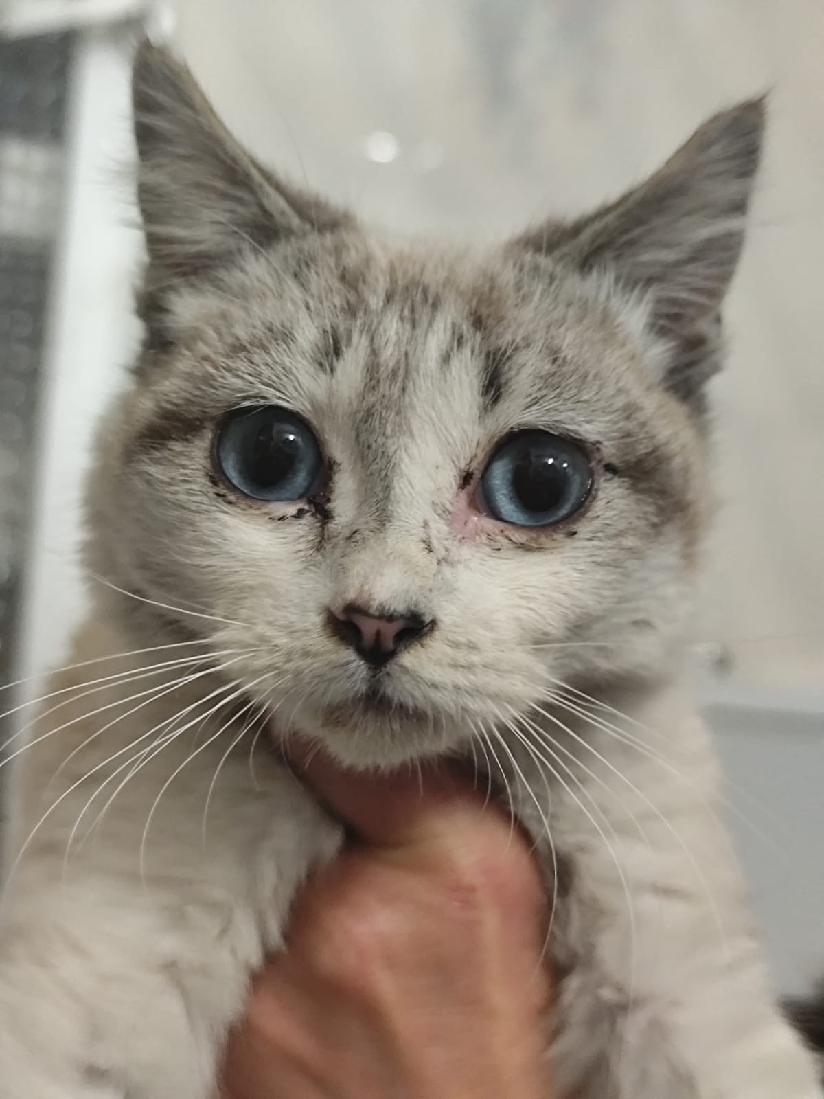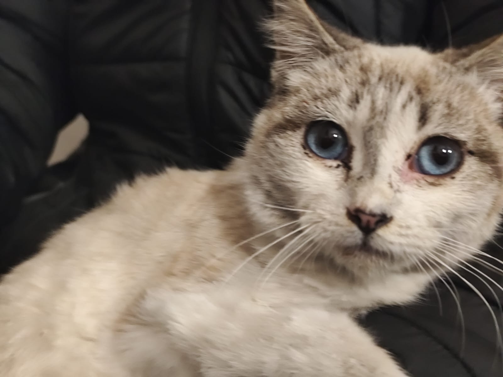 Dürfen wir euch den Siam Bube Maike vorstellen? Er tauchte auf einem verlassenen Parkplatz in einer Wohnsiedlung auf, wo er sich im Motorraum eines Autos versteckte. Als man ihn gefunden hat, war er sehr abgemagert, schmutzig und hungrig. Aktuell lebt er seit dem 10. März 2026 auf einer Pflegestelle, welche ihn gut versorgt, bis wir für ihn sein neues Zuhause gefunden haben.