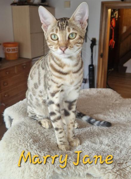 Ich süsse Bengal schmuse Tigerin, suchen ein neues Zuhause um zu kuscheln, spielen und Freude zu verbreiten. Ich heisse Marry Jane (MJ) und bin die Tochter von dem grossen Internationalen Champion Kasanova vom Hause Bosshart und Internationaler Champion Swiss Beauty Joy. Ich bin am 01.03.2025 zur Welt gekommen, habe meinen Koffer gepackt und kann sofort meine neues Abenteuer beginnen.