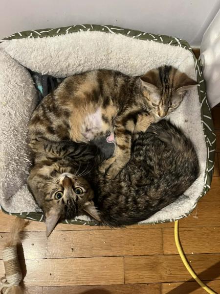 Beide Mädchen sind verspielt und liebevoll. Sie lieben es, auf deinen Schoß zu klettern, und können stundenlang in deinen Armen kuscheln, schnurren dabei glücklich und genießen jede Zuneigung, die man ihnen gibt. Sie gewöhnen sich leicht an neue Umgebungen und sind sanft und einfach im Umgang.
